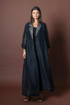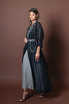 This is a 2-piece set and includes a raw organza jacket with lace lapel and pocket detailing, complimented with a fabric chain lace belt. Each piece may be worn separately.